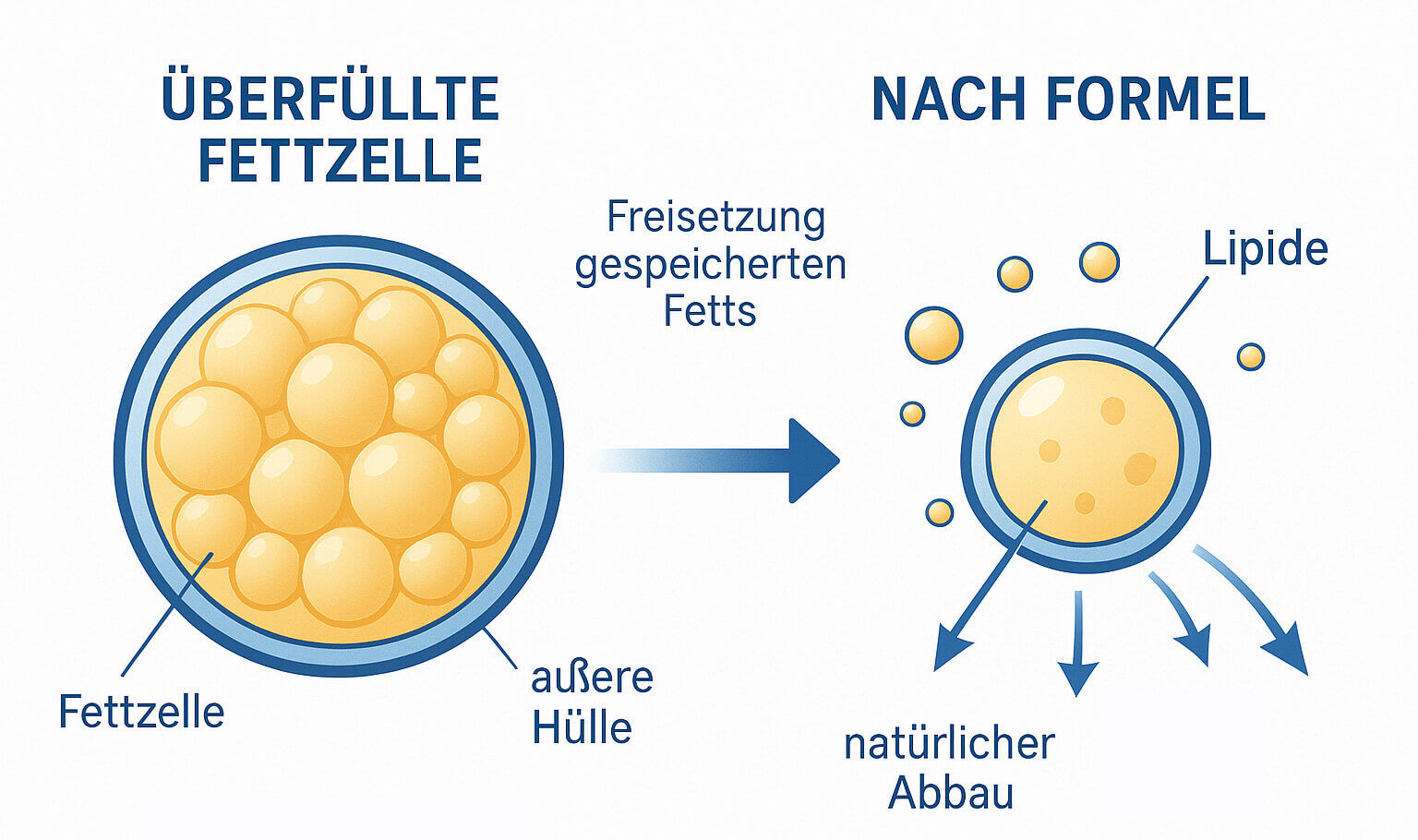 Die Formel löst gezielt die äußere Hülle überfüllter Fettzellen auf, sodass der Körper das eingelagerte Fett ganz natürlich abbauen und verbrennen kann – ohne den Stoffwechsel herunterzufahren wie es bei den Spritzen der Fall ist.